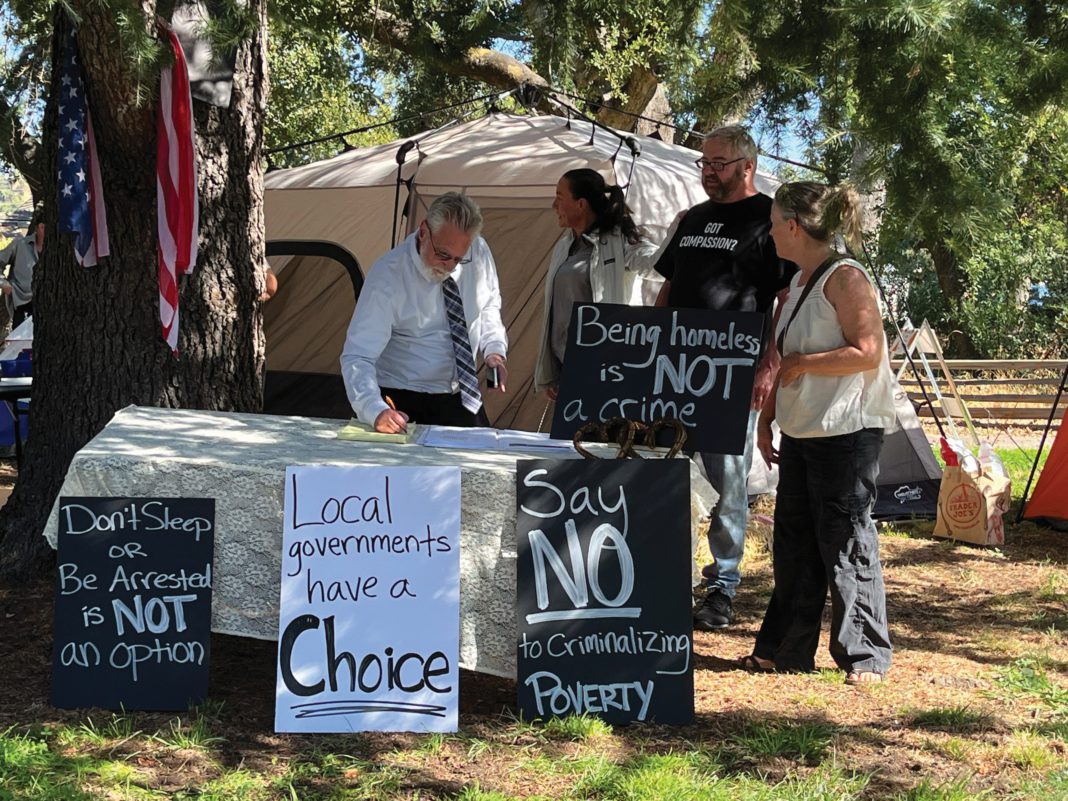 “It is disingenuous to call it an urgency ordinance,” said attorney Hollingsworth. “There was no event immediately preceding this special meeting. If it was really urgent, they would have done it in July, after the Supreme Court ruled in Grants Pass that it’s not cruel and unusual punishment to criminalize sleeping.”