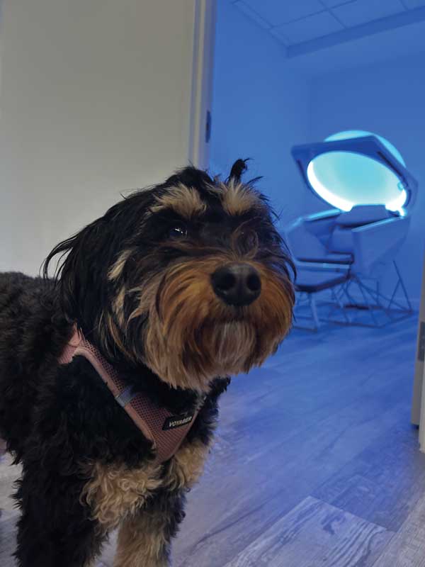 Clients range from the already-health-savvy to those just beginning their wellness journey, all of whom are greeted with the same enthusiasm, and often by Mousse, the facility’s unofficial therapy dog. The vibe is casual and encouraging, with staff available to walk newcomers through each treatment and help customize a protocol based on individual goals.