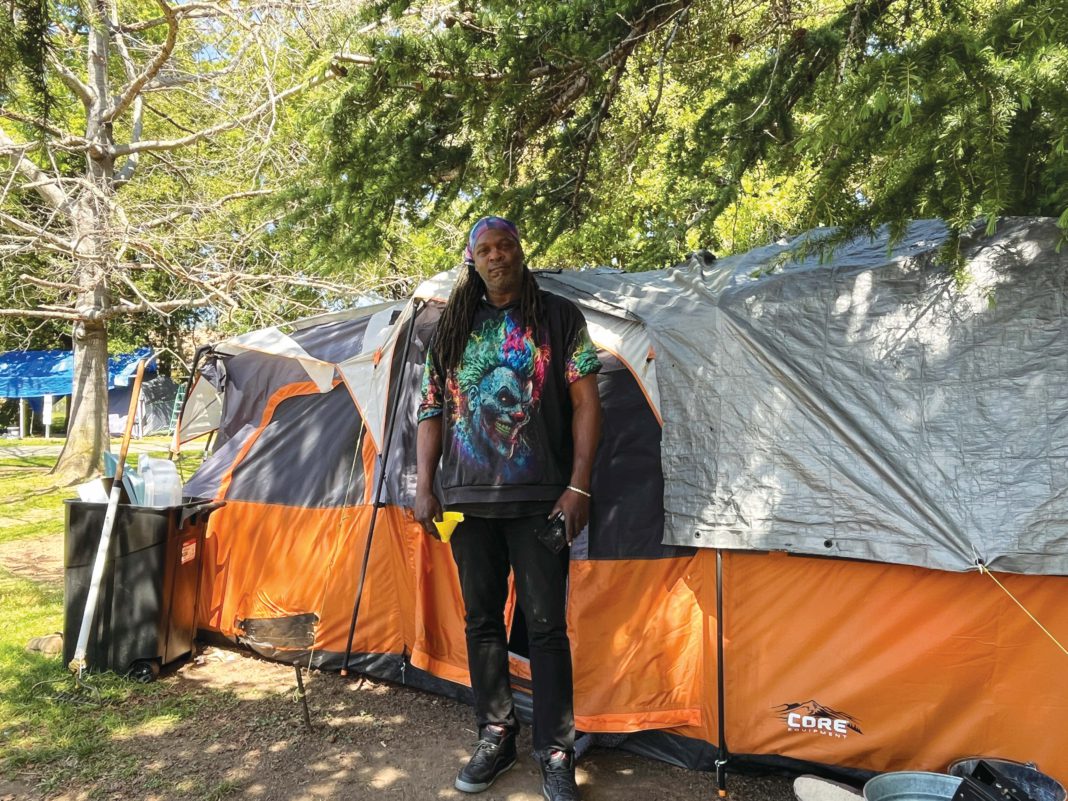 Jason Sarris, who established the Lee Gerner Park camp and eventually received housing, spends numerous hours each week helping the seven homeless people. With his lived experience, Sarris understands the campers’ uncertainty and fear.